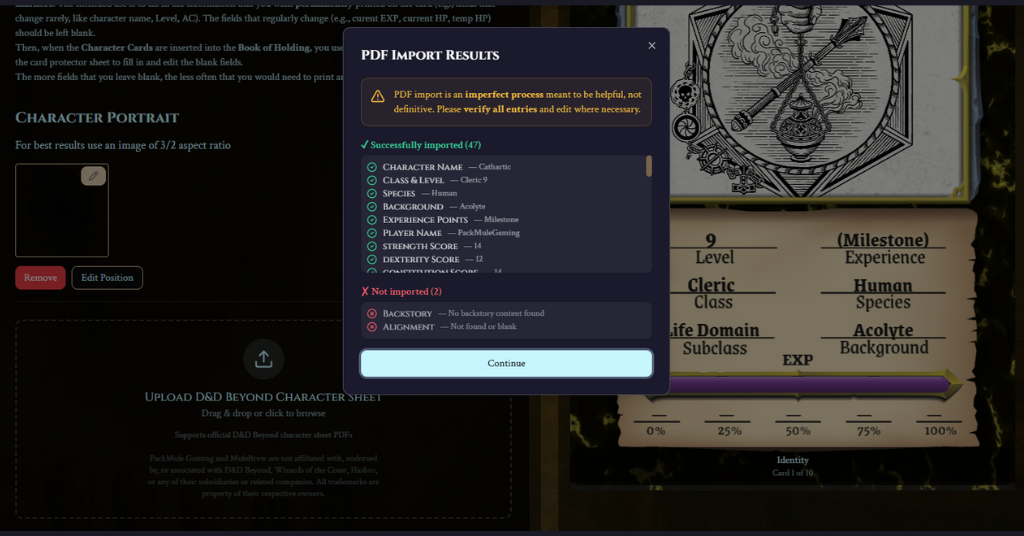 Character Cards can now accept uploaded D&D Beyond PDF character sheets and automatically populate the card for you.