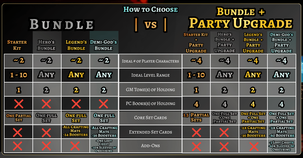 A few of you gave very fair feedback that the page was getting confusing, especially around the difference between the main bundles, extra PC/GM binders, and party upgrades. So we went back in and simplified the structure.